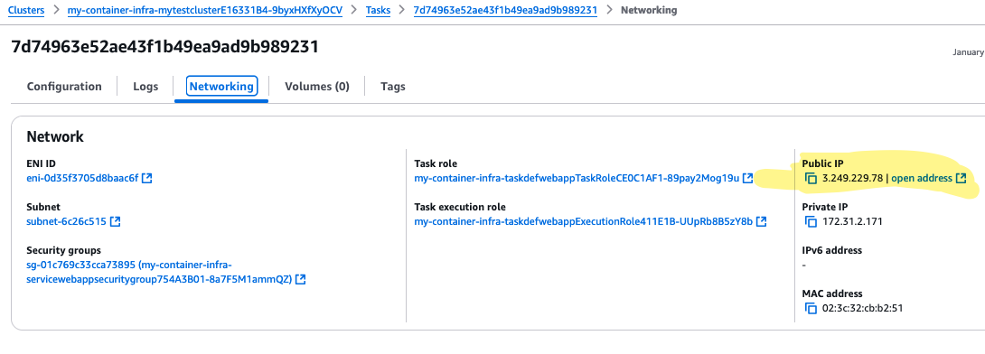- Change so that a public IP address is assigned to the container.